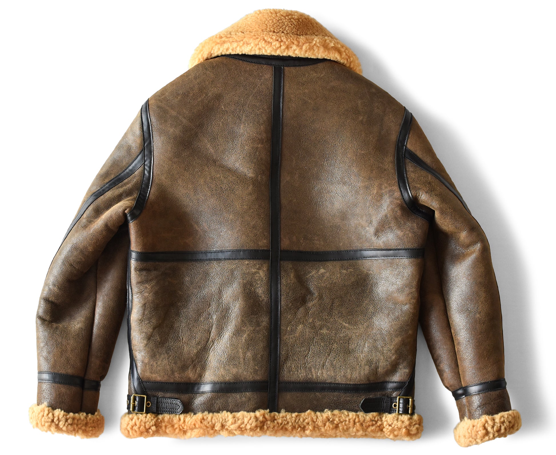 天然の羊革とウールが一体となった素材は、天然素材ならではの高い保温性を誇り、極寒の地でパイロットが愛用したのも納得の機能性。